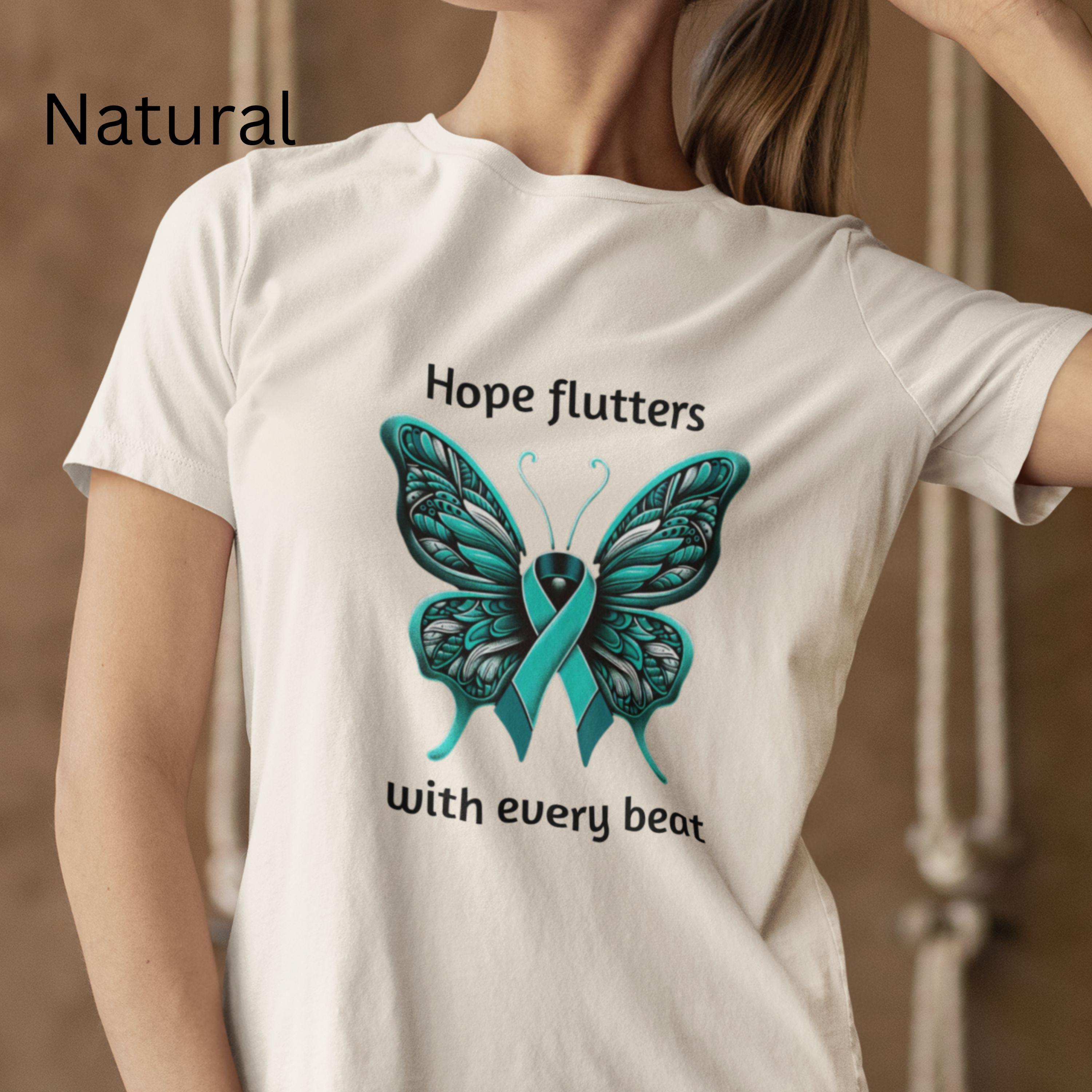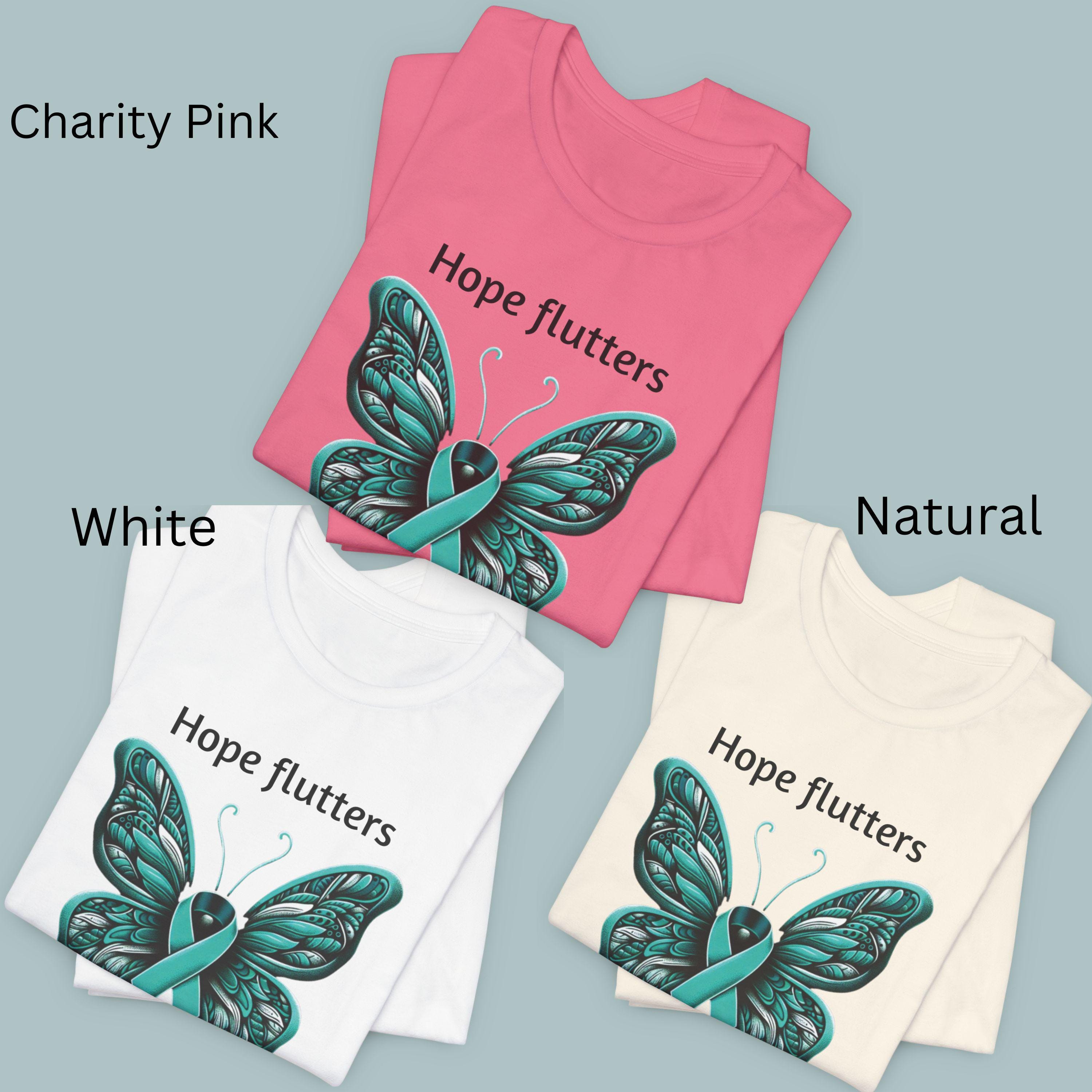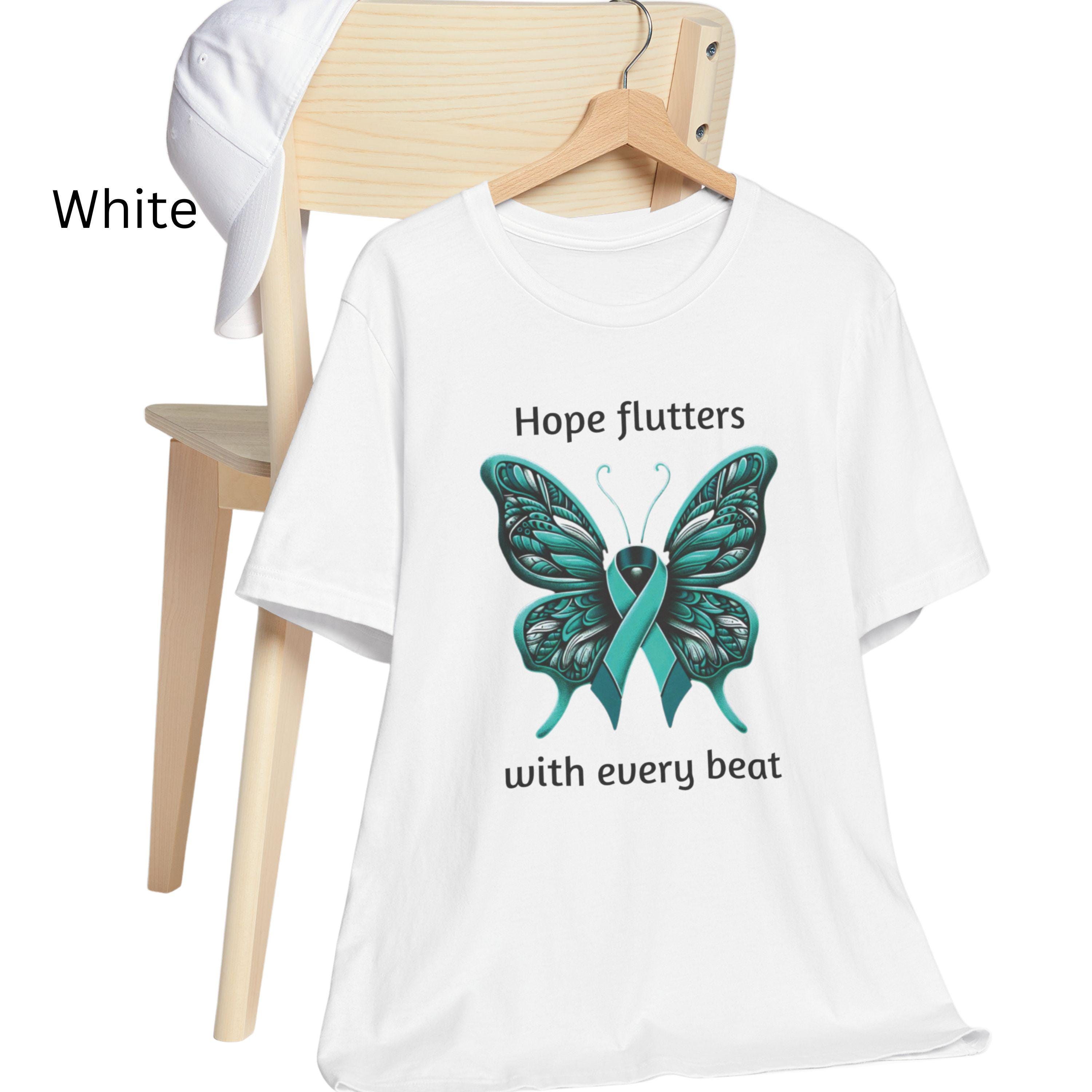 Teal Ribbon Butterfly T-Shirt: Ovarian Cancer & PTSD Awareness