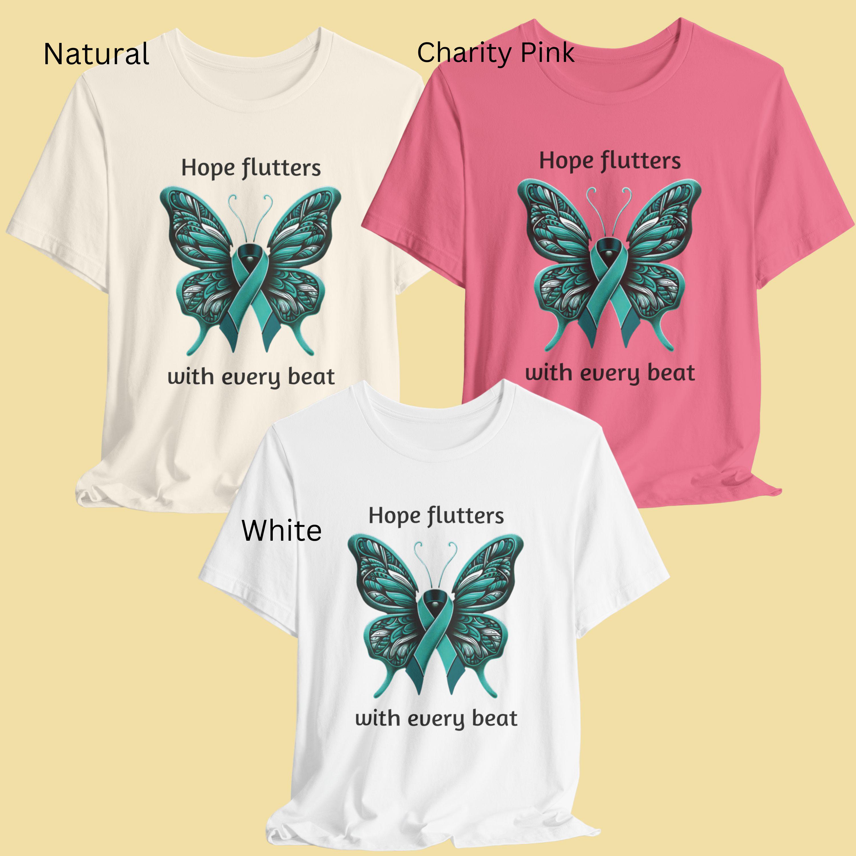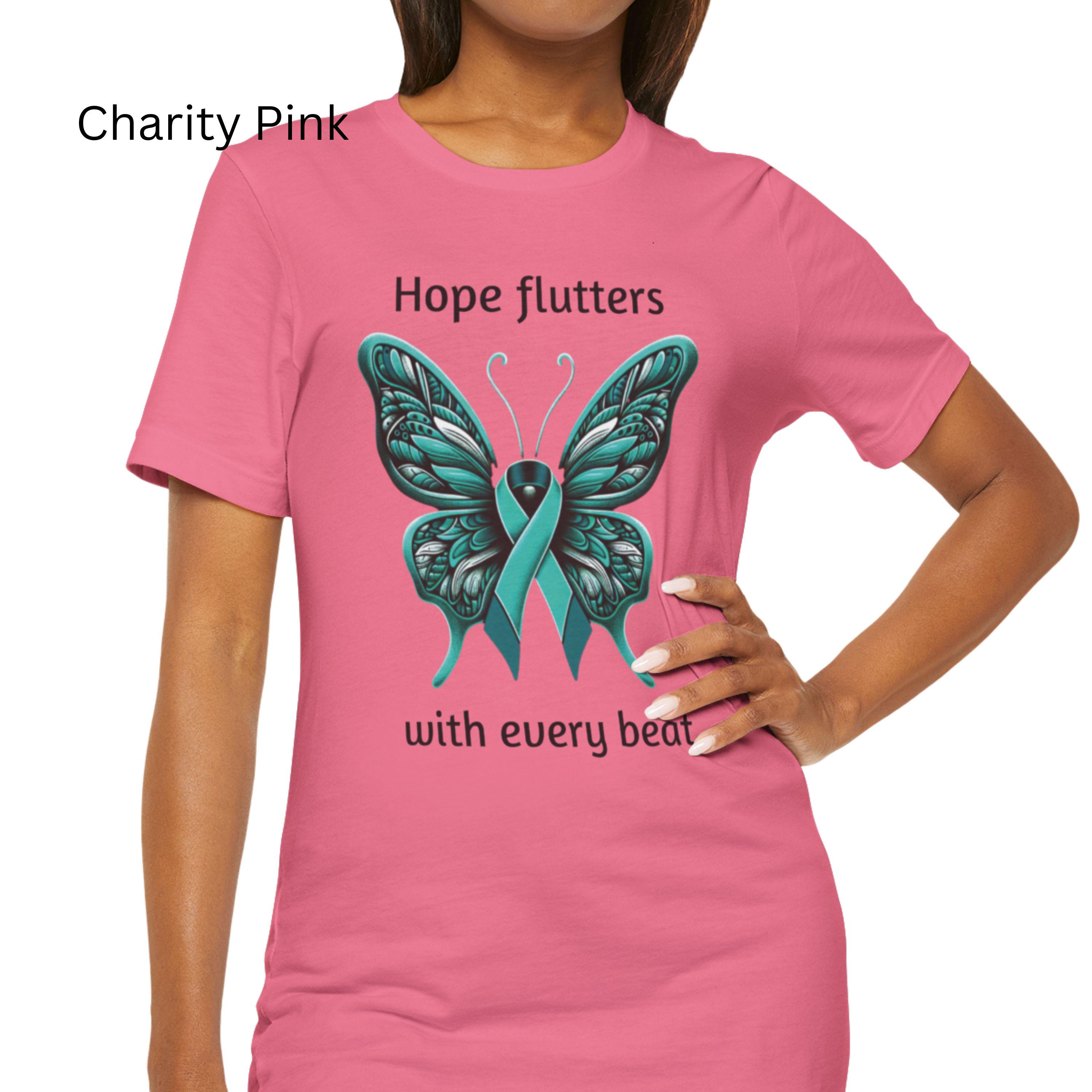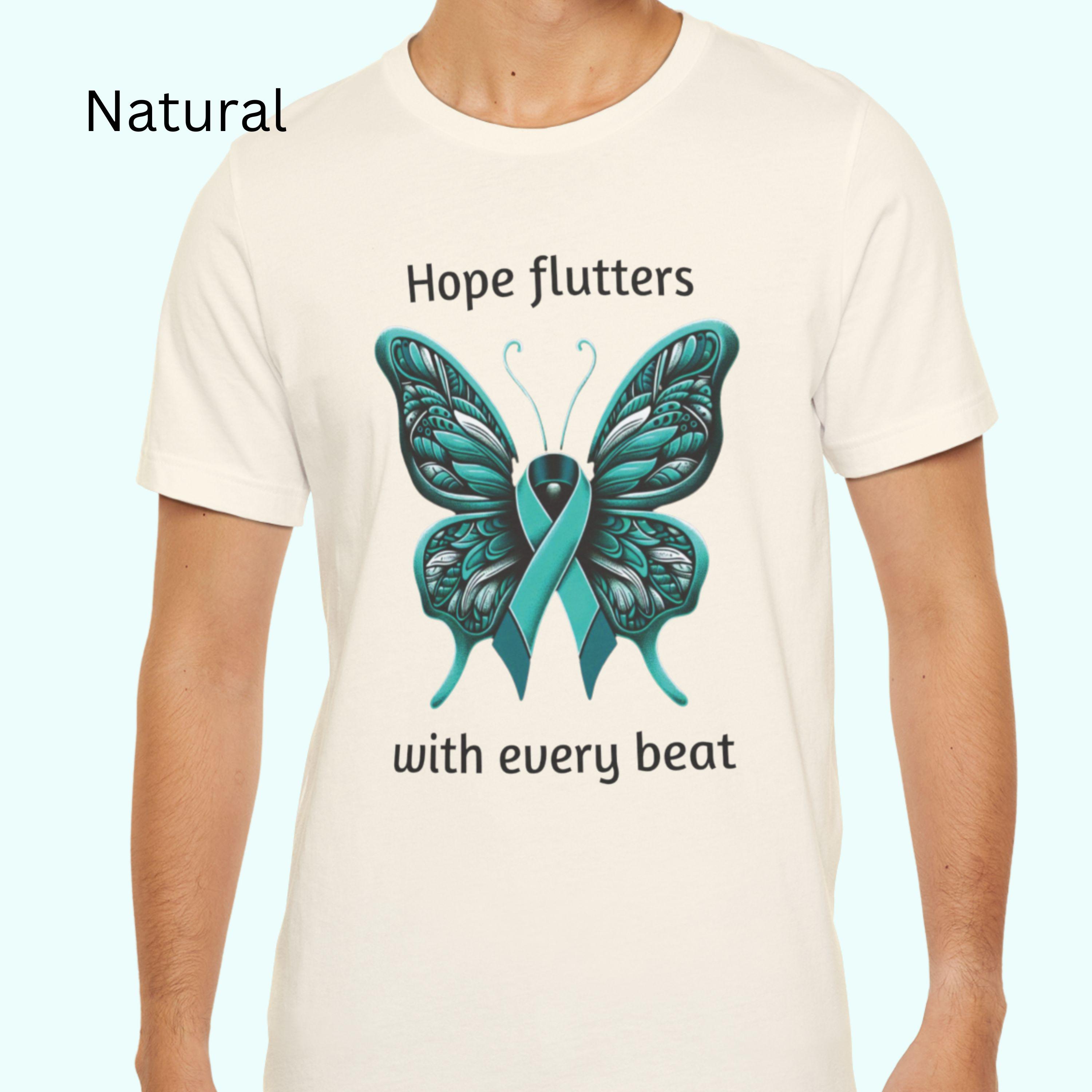 Teal Ribbon Butterfly T-Shirt: Ovarian Cancer & PTSD Awareness