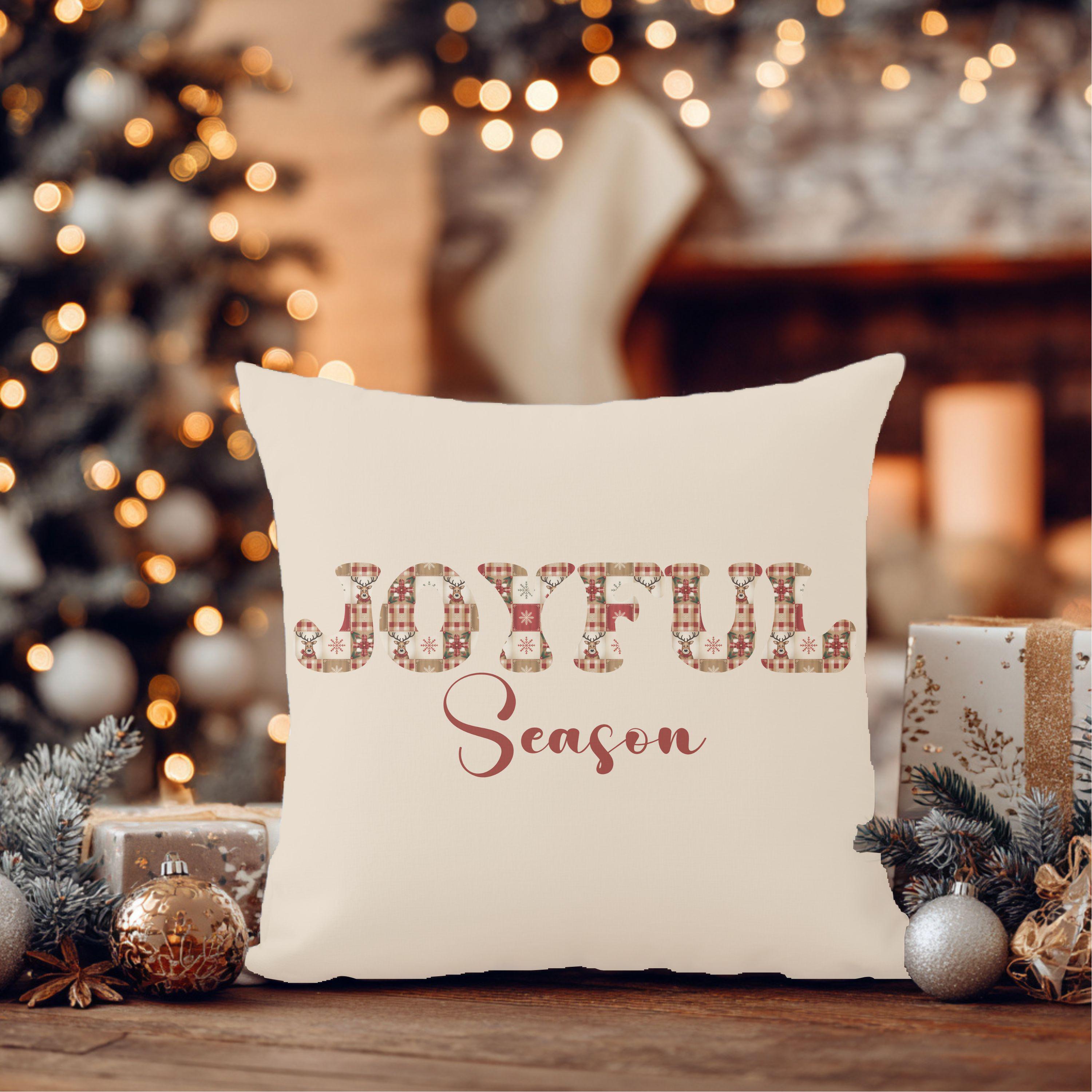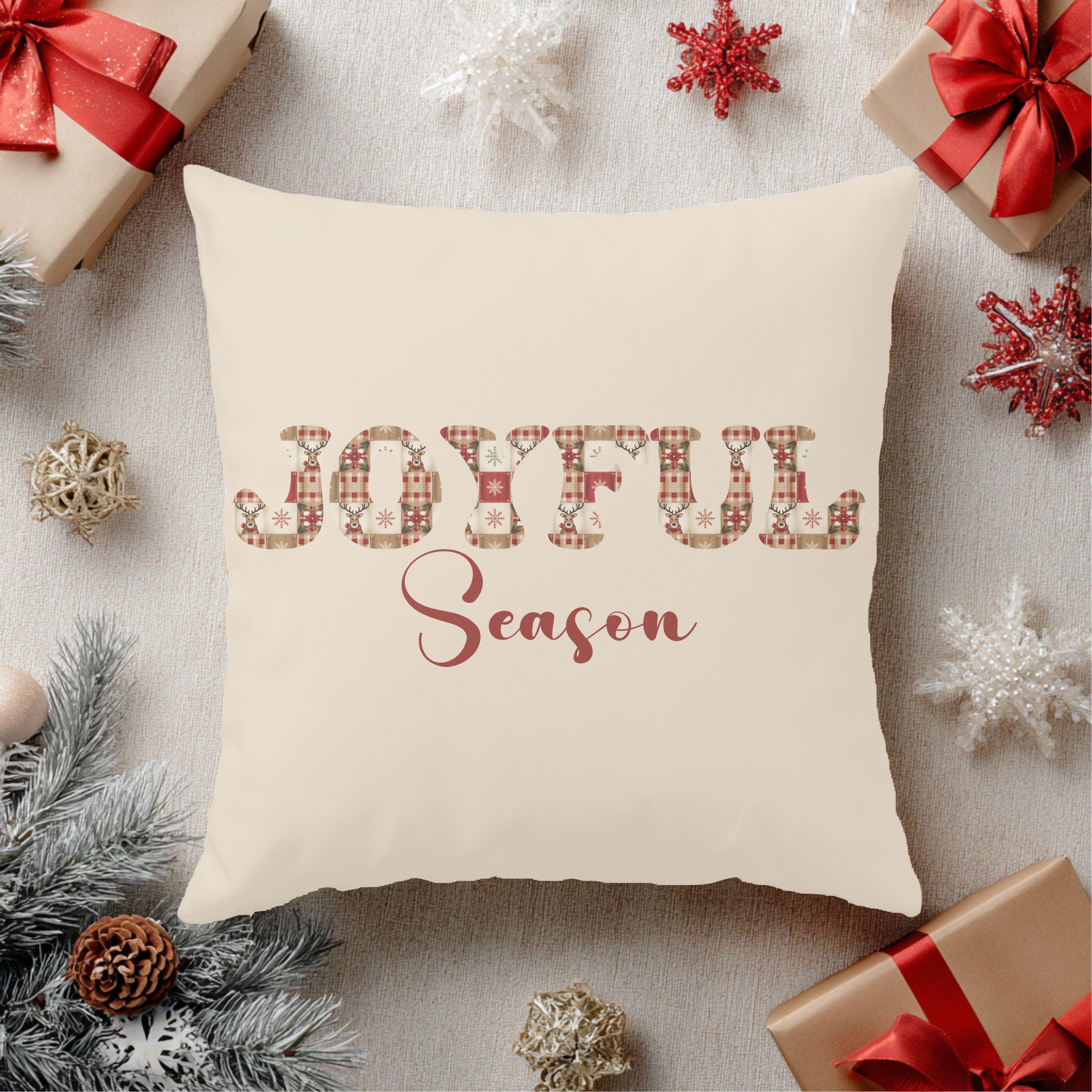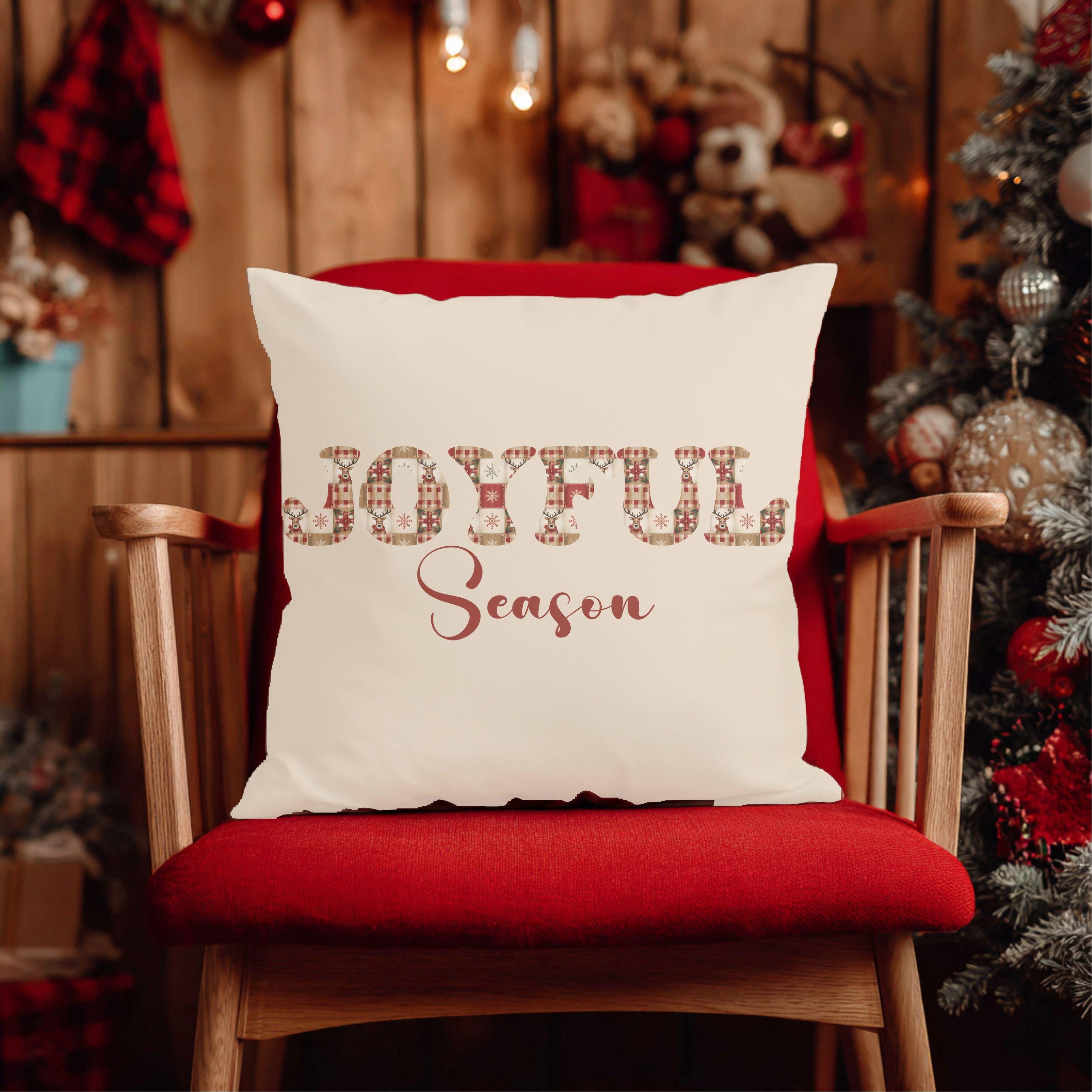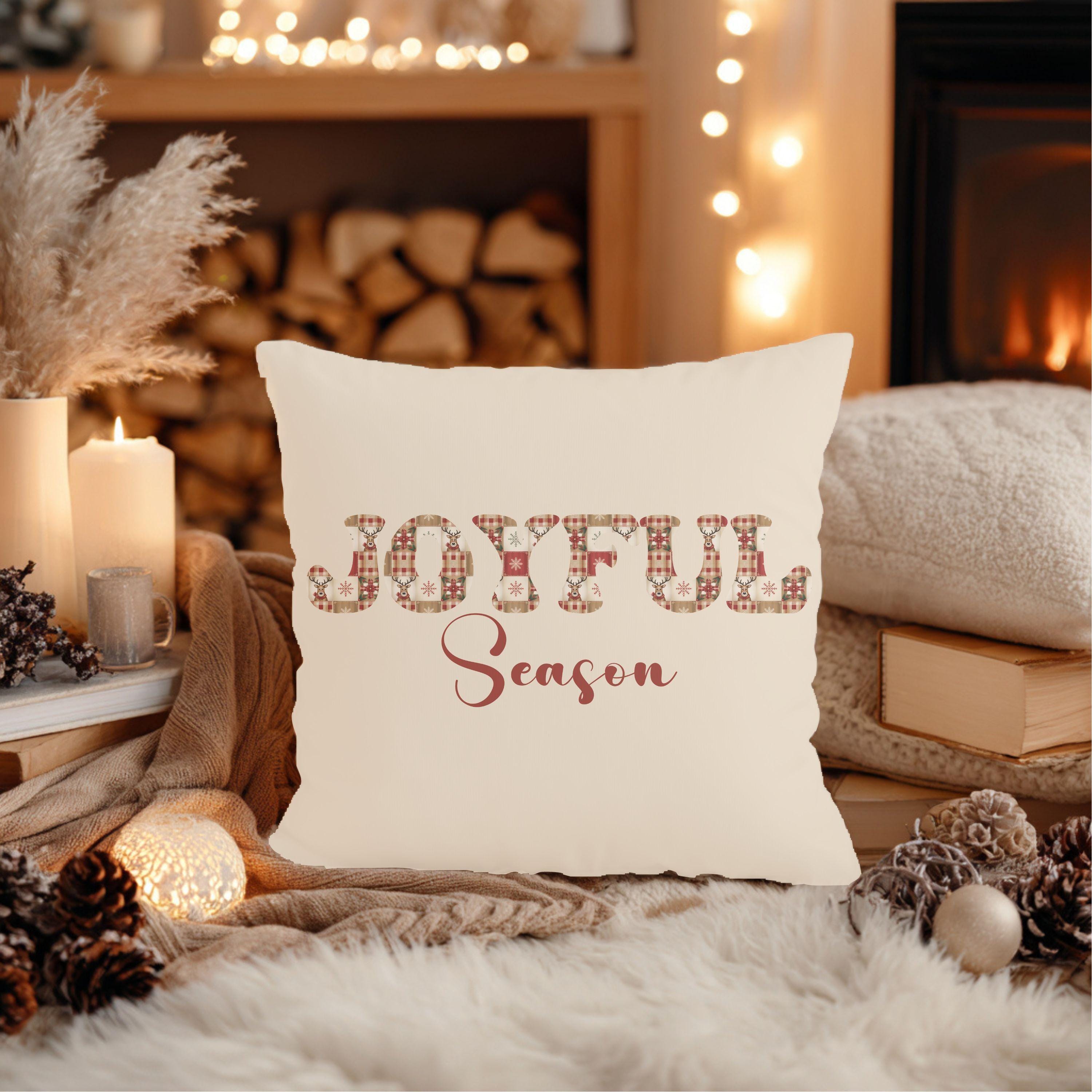 Joyful Season Christmas Pillow | Cozy Plaid Holiday Throw Pillow | Farmhouse Christmas Decor | Gift for Her | Festive Home Accent