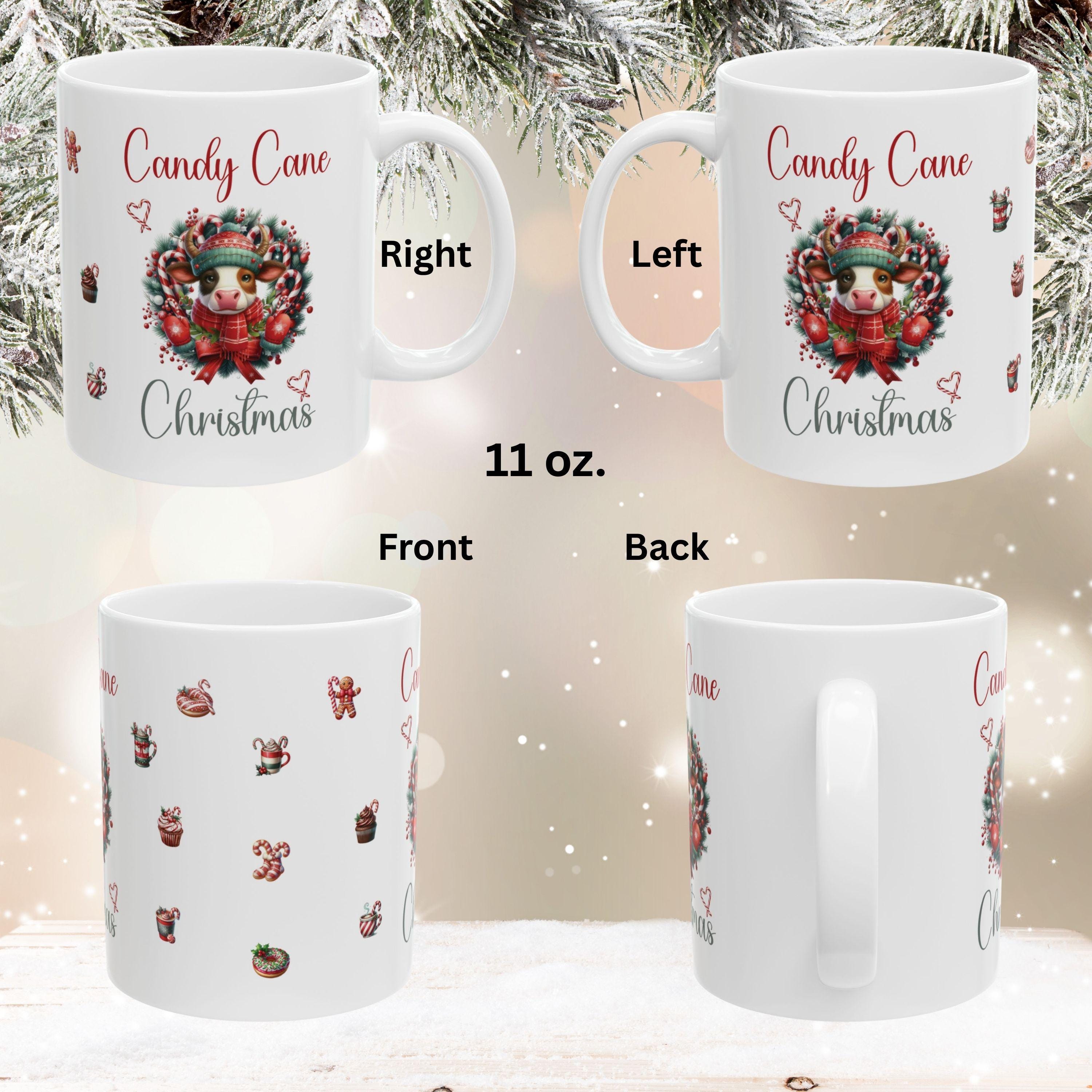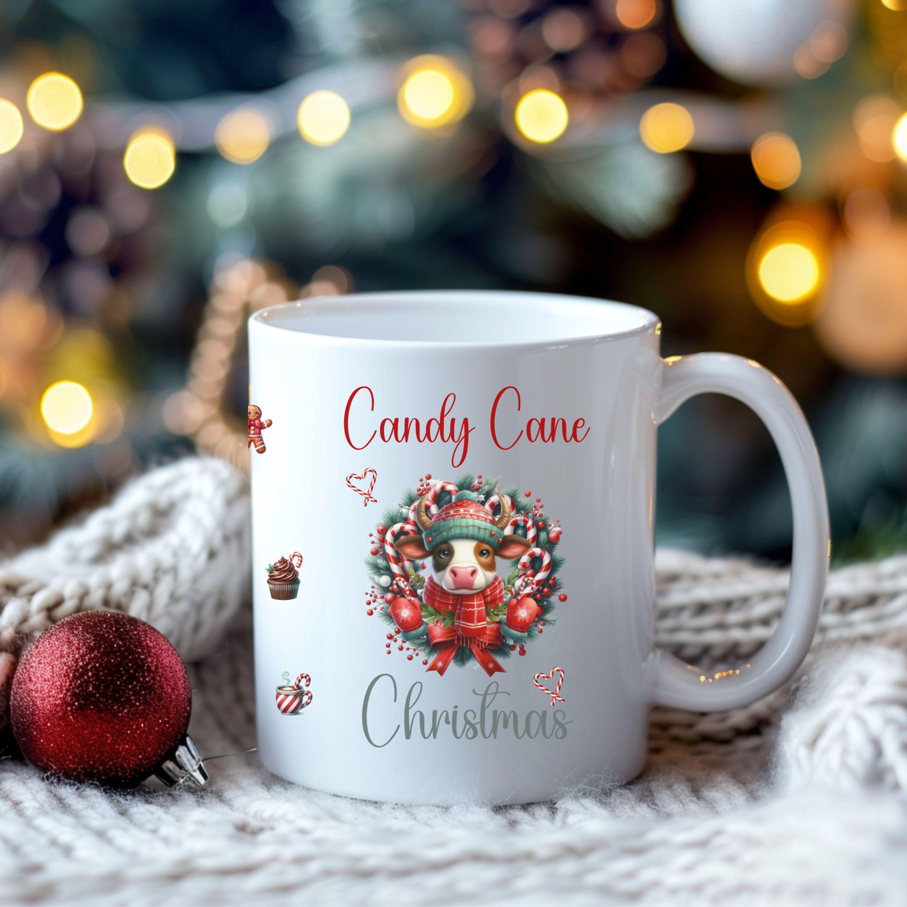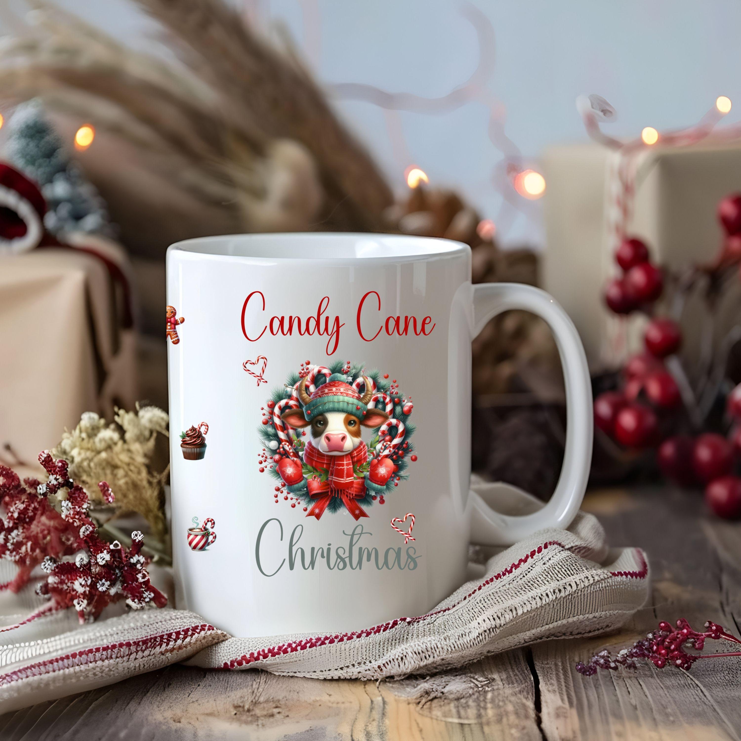 Candy Cane Christmas Mug — Festive Cow Design for the Holiday Season 🎁