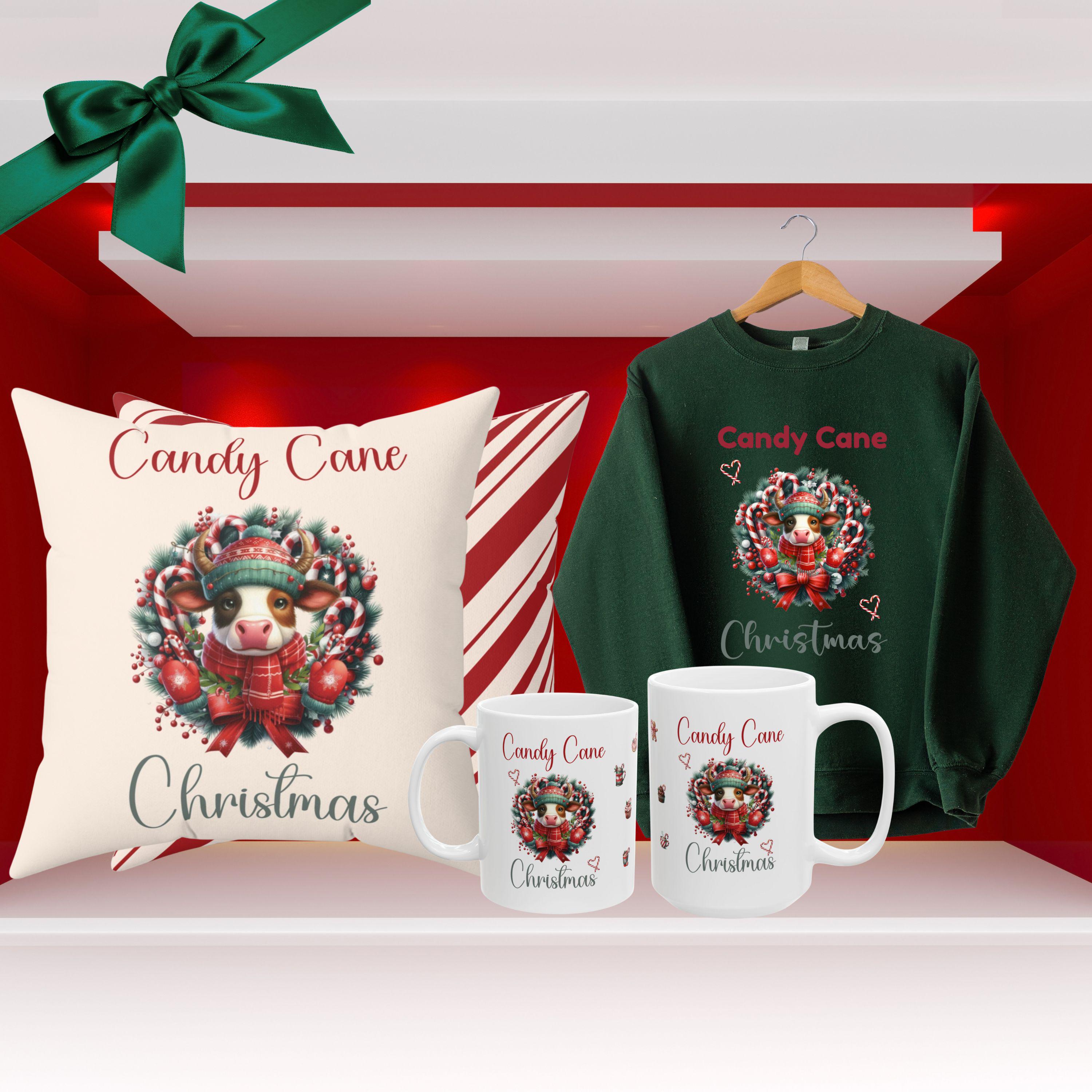 Complete the look with our Candy Cane Christmas pillow and sweatshirt (sold separately). Perfect for cozy gift bundles or family sets!