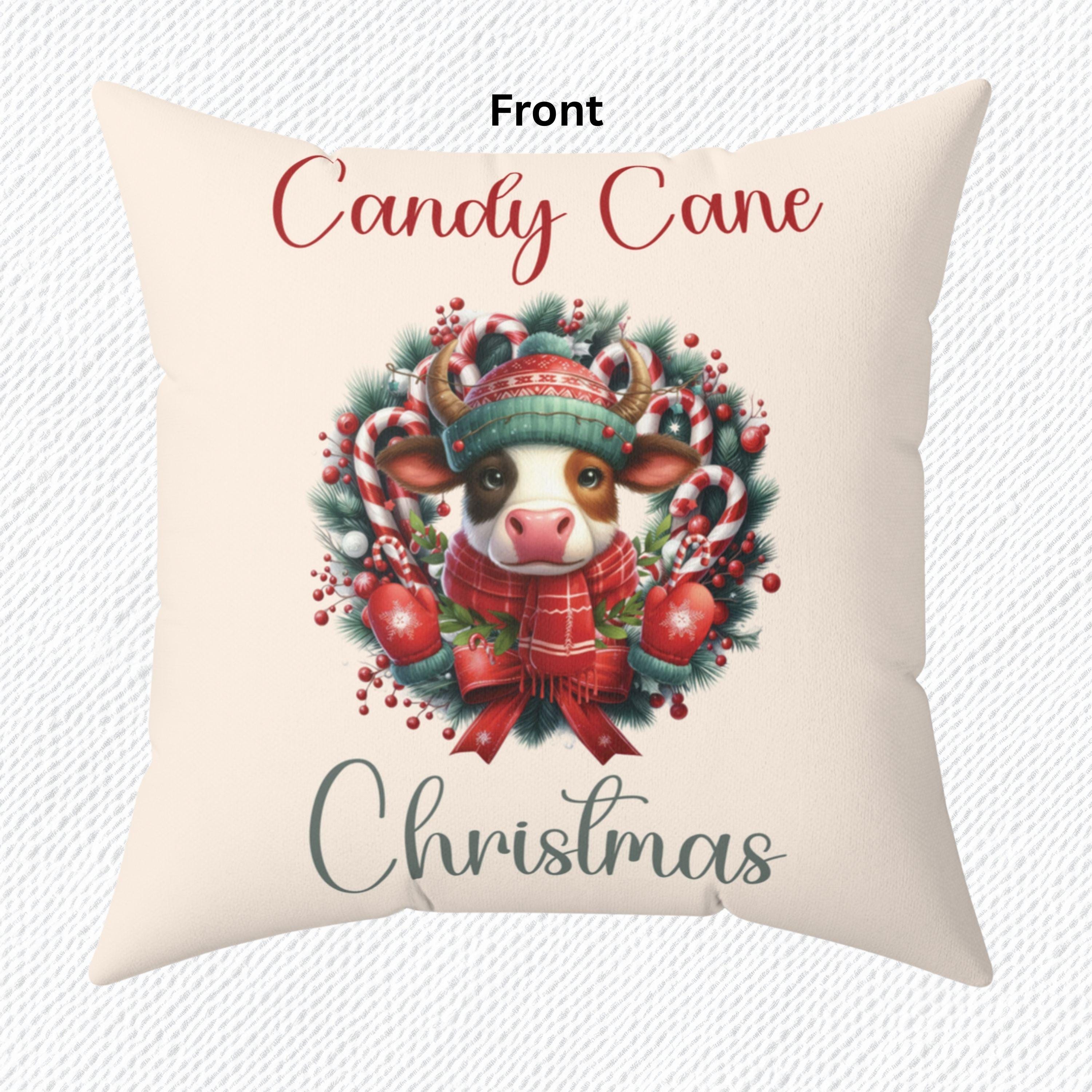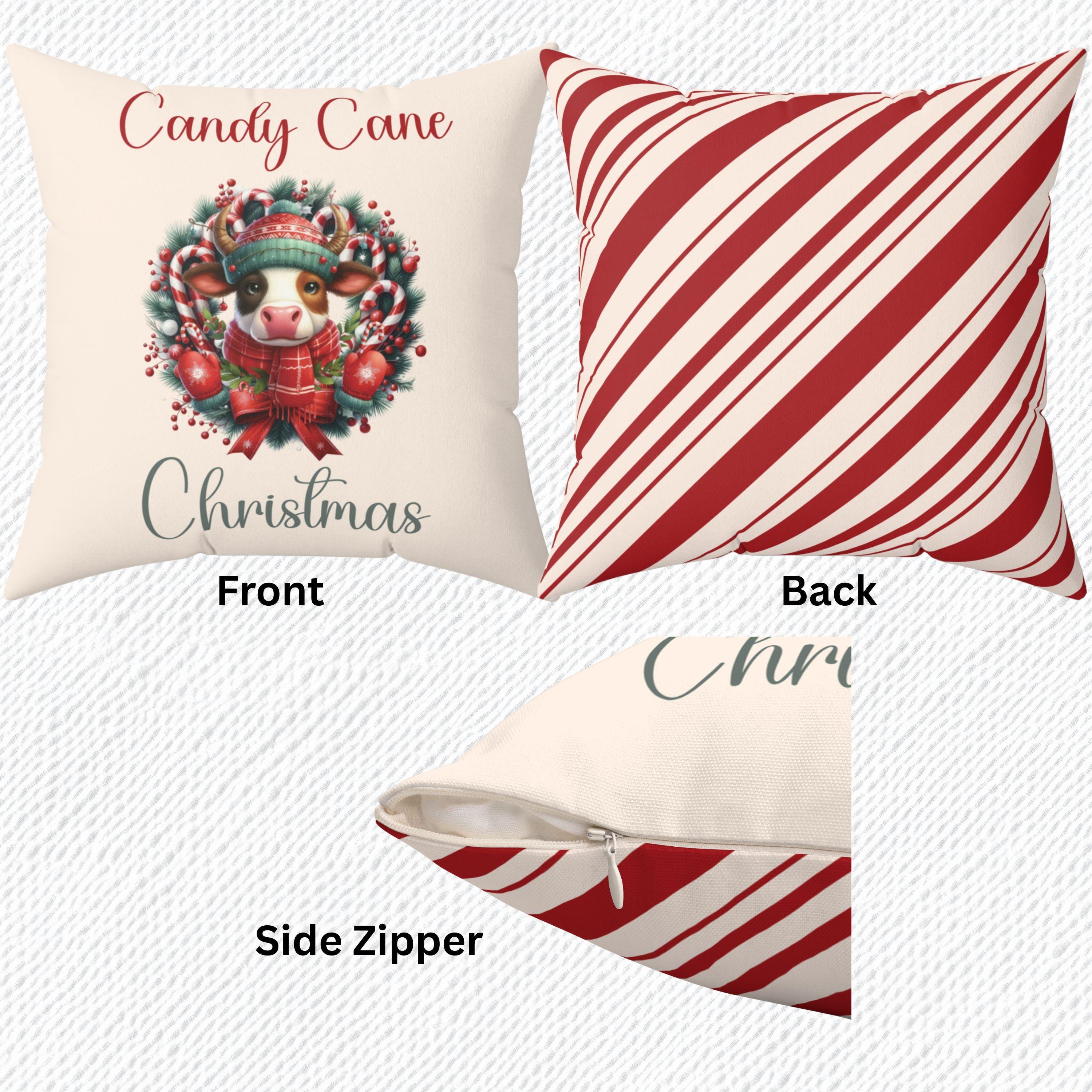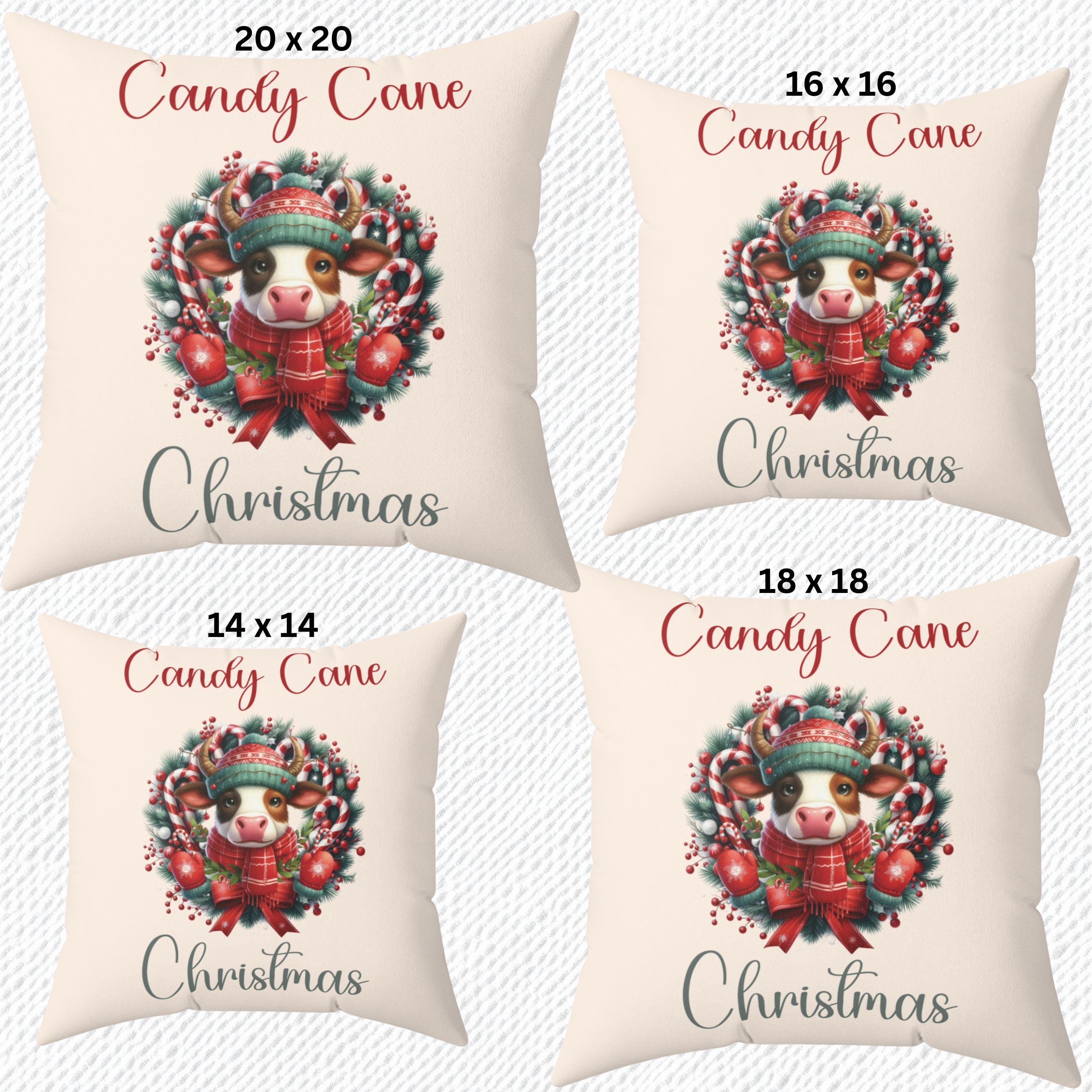 Candy Cane Christmas Pillow, Cow in Wreath Cushion, Double Sided Christmas Throw Pillow, Cozy Holiday Home Decor, Giftable Pillow Cover
