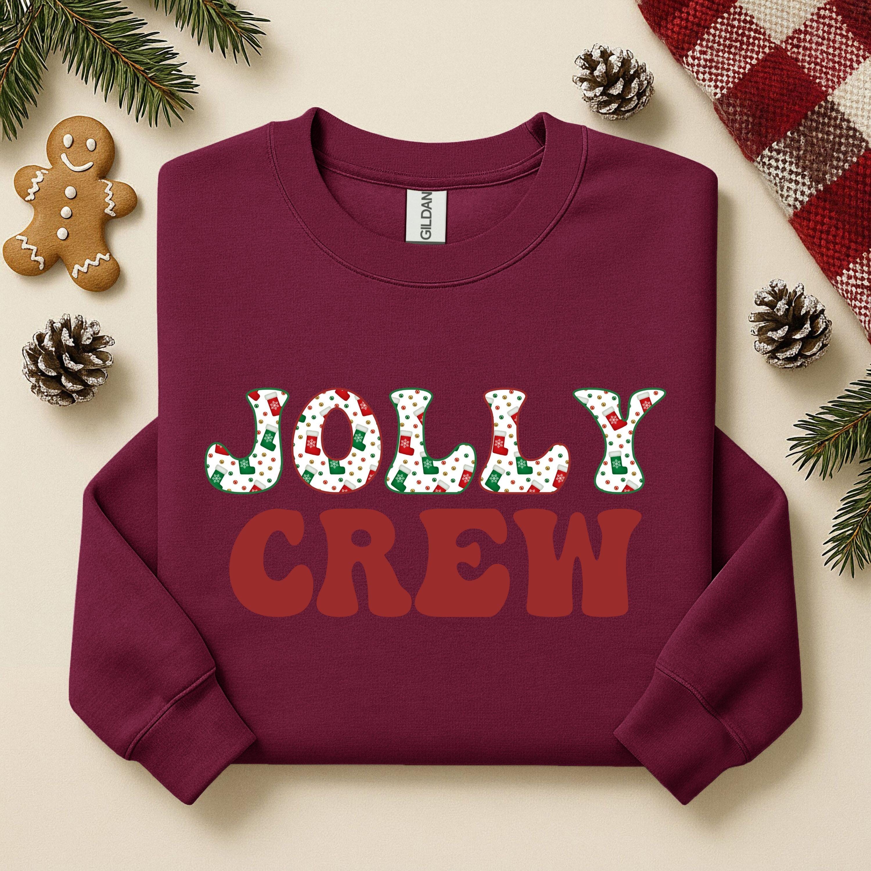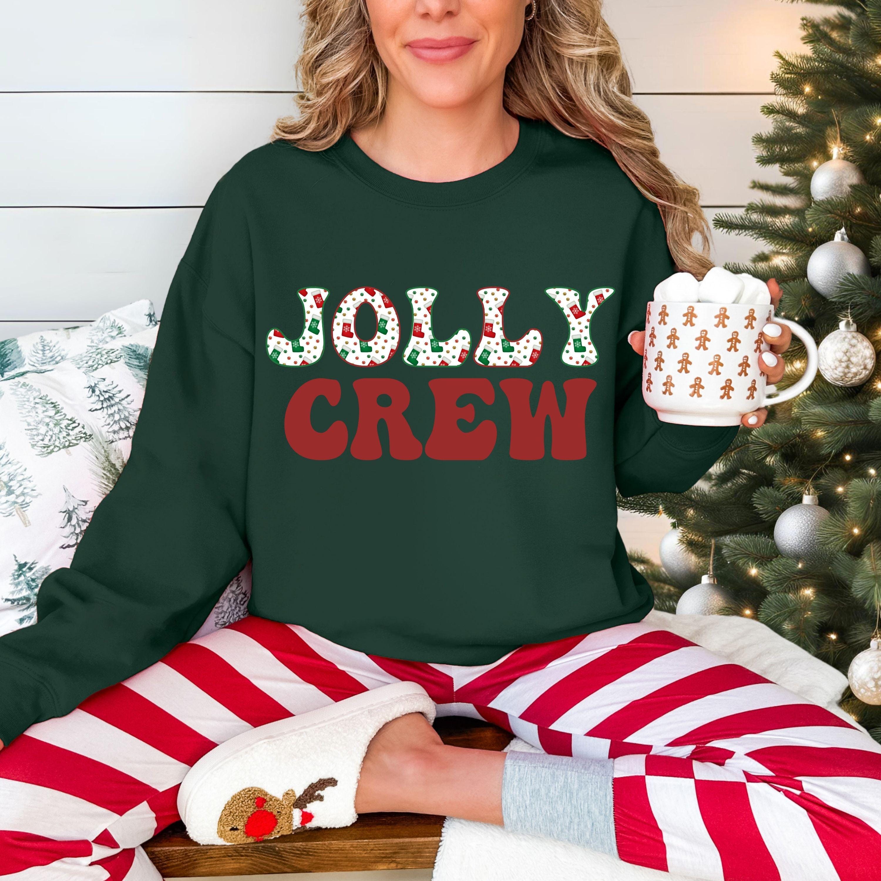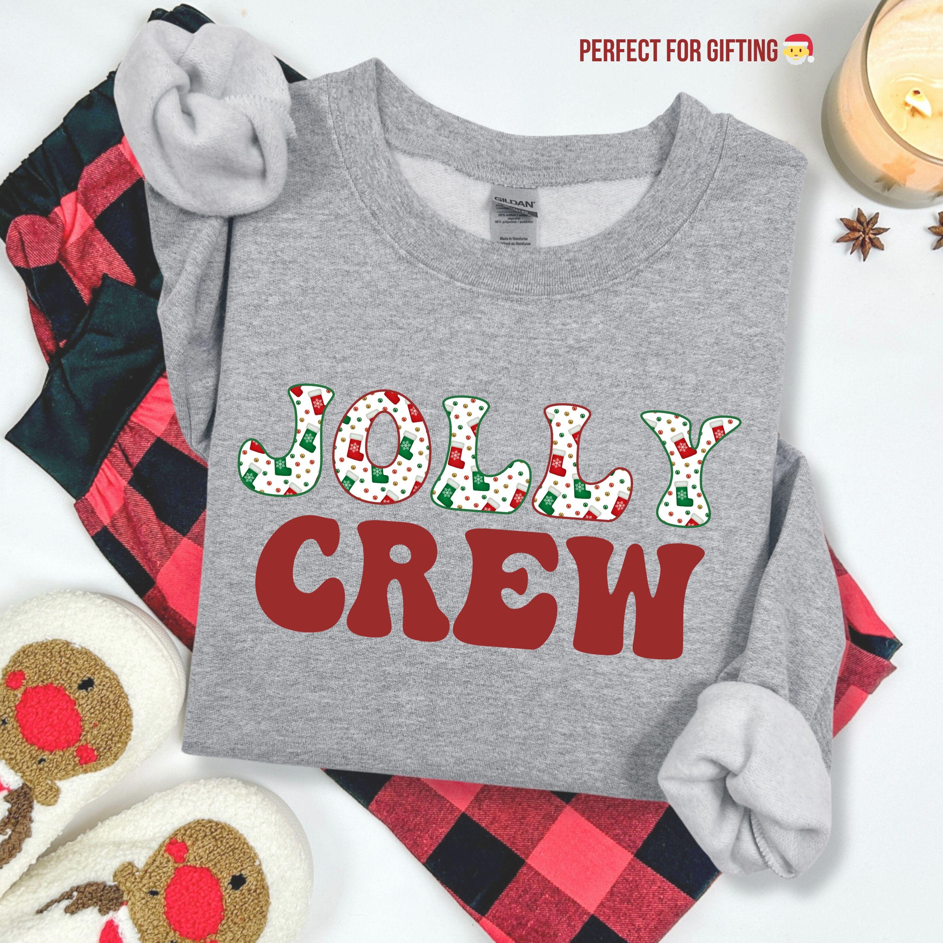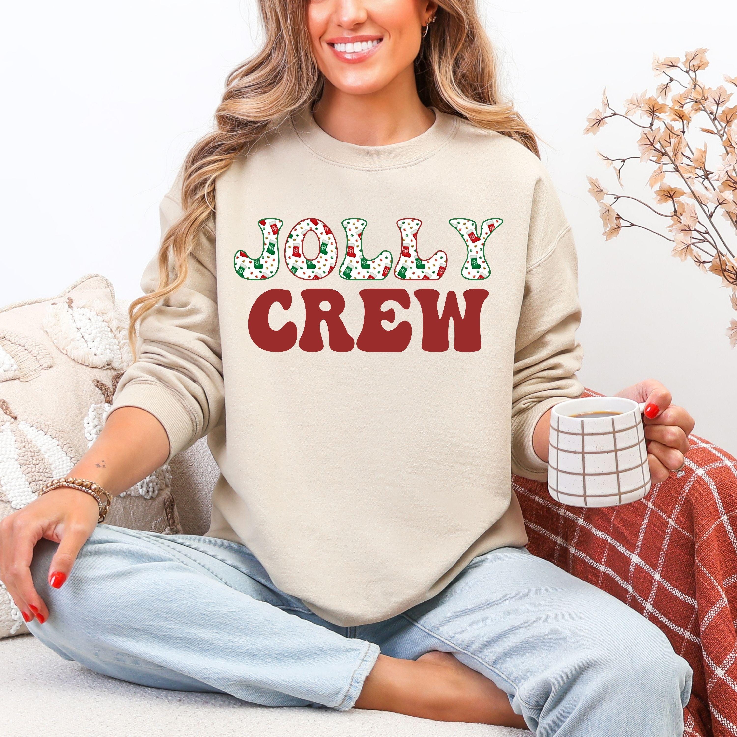 Jolly Crew Christmas Sweatshirt | Matching Holiday Family Crewneck | Cozy Christmas Gift | Retro Festive Gildan 18000 Unisex Pullover